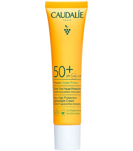 Caudalie présente le tout premier soin de sa révolution solaire. Le Fluide Protecteur Vinosun Très Haute Protection SPF 50+ protège efficacement le visage et le cou des rayons UVA/UVB tout en offrant une action antioxydante aux peaux les plus sensibles. Avec cette texture invisible, ultra-légère et sans parfum, vous choisissez une protection nette et invisible au quotidien. Ingrédients principaux : épicéa, polyphénols, vitamine E. Application : utilisez le Vinosun Protect Fluid Très Haute Protection SPF 50+ quotidiennement pour une protection nette et invisible. Agitez-le avant utilisation et appliquez-le après votre routine de soins habituelle et avant votre maquillage, en évitant le contour des yeux. Lors d'une exposition au soleil, renouvelez l'application du Vinosun Fluid toutes les 2 heures et évitez si possible les rayons intenses entre 12 et 16 heures. Évitez d'exposer directement les bébés et les jeunes enfants au soleil. Pour une protection encore plus grande, portez un t-shirt, des lunettes de soleil et un chapeau lorsque vous vous exposez au soleil. ...