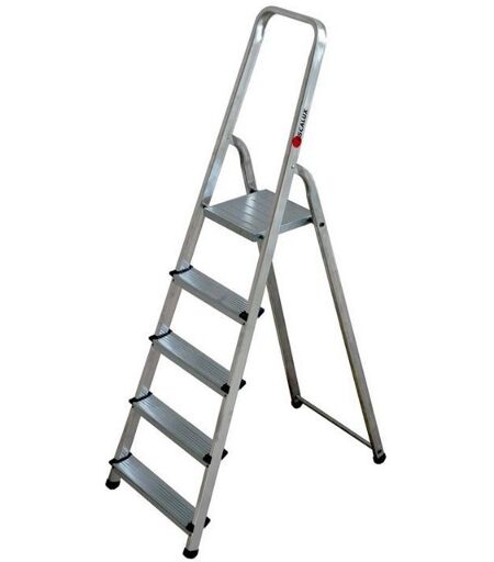 Escabeau aluminium pour le ménage et le bricolage Points forts - Embouts antidérapants interchangeables - Plate-forme en acier zingué avec système anti basculement breveté "SAB" - Structure légère en aluminium - Marches en acier zingué - Articulations par crosses monoblocs Caractéristiques techniques - Nombre de marches : 5 - Hauteur de travail : 2.98 m - Hauteur de la plate-forme : 98 cm - Hauteur de rangement : 168 cm - Largeur de la base : 48 cm - Poids : 5.9 Kg Norme Décret 96-333 NF EN131 ...