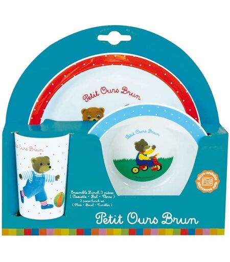 Cijep - Petit Ours Brun ensemble repas incluant 1 verre 220 ml, 1 assiette et 1 bol micro-ondables pour enfant