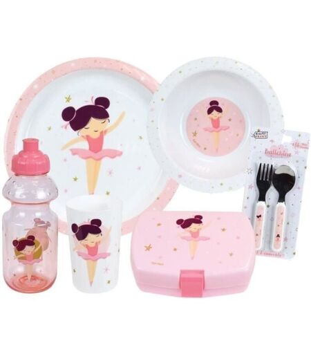 Lot Vaisselle Danseuse Ballerine Fun House 006364 - Verre, Assiette Creuse, Assiette Plate, Couverts, Gourde et Boîte Goût
