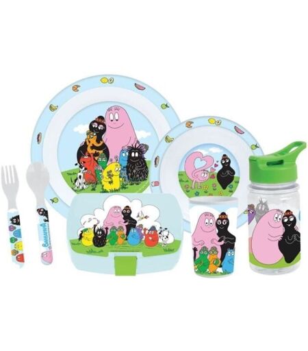 CIJEP Lot vaisselle - fun house - barbapapa - Verre, assiette Ø22 cm et Ø16 cm, couverts, gourde et boite goûter