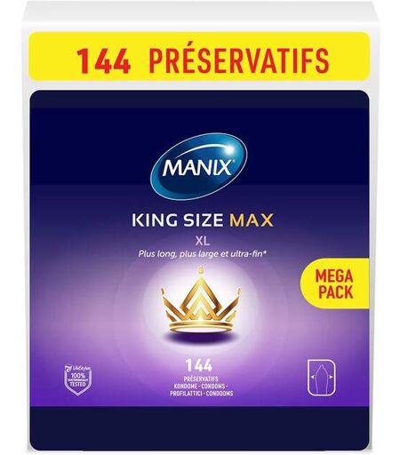 Découvrez la Boîte de 144 Préservatifs (https://www.sexyavenue.com/fr/1448-preservatifs) King Size Max de Manix (https://www.sexyavenue.com/fr/marques/manix_91), ils sont parfaits pour les pénis de très grande taille ! Profitez d'intenses rapports sexuels avec ces préservatifs de grande taille et au diamètre large. Ils vous apporteront toutes les sensations d'un rapport sans protection mais avec la sécurité en plus ! Les préservatifs King Size Max sont plus grands et plus larges, ils s'adapteront parfaitement à votre anatomie. Ces préservatifs vous confèrent un maximum de confort pour éviter que ce dernier ne craque ! Fabriqués en latex de caoutchouc naturel sans parabène, ces préservatifs sont prélubrifiés et possèdent un réservoir à l'extrémité. Vous vous sentirez protégé tout en prenant intensément du plaisir ! La forme anatomique des condoms permet une mise en place facile. Testés électroniquement à 100%, les préservatifs Manix affichent les normes les plus exigeantes pour votre sérénité. Norme CE. Existe également en Boîte de 3 Préservatifs (https://www.sexyavenue.com/fr/manix-king-size-max-boite-3.html). ...
