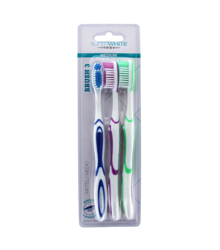 Parapharmacie > Hygiène & Premiers soins > Bucco-dentaire > Brosses à dents Superwhite Brush 3 3 Brosses à Dents Médium - Brosses à dents - Pharmacie en ligne LaSante.net