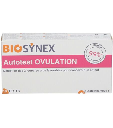 Détection des 2 jours les plus favorables pour concevoir un enfant BIOSYNEX autotest Ovulation est un test immunochromatographique détectant l’hormone lutéinisante (LH) dans l’urine, qui augmente et déclenche l’ovulation dans les 24 à 36 heures après le pic. Vous pouvez donc aisément déterminer les 2 jours de fertilité optimale pour concevoir. ...