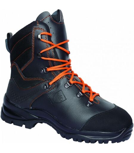 Avantages : Confort : doublure en textile respirant, bordure élastique qui protège de la saleté et de la sciure Performant : crampons en caoutchouc antidérapant à la voute plantaire Longévité : tige en cuir, protection additionnelle avant et arrière Détails : Œillet plat en D Crochet de laçage sur la partie montante Sur-bout avant et arrière anti-usure Bordure élastique contre la saleté et la sciure Première de propreté antifongique et antibactérienne Embout acier extra-large Semelle anti-perforation composite Chaussures isolées contre le froid Semelles résistantes à la chaleur Relief facile à moyen Pointure du 36 au 50 Coloris : noir avec surpiqure et lacets orange Poids en taille 43 : 2.1 kg (paire) Hauteur de tige : 18 cm Matières : Tissu tige : cuir de vachette souple et épais traité hydrofuge 2.2 - 2.4mm Doublure : textile respirant antifongique et antibactérien Soufflet : cuir de vachette hydrofuge Tige haute : cordura® Semelle : caoutchouc nitrile avec crampon central Normes : ...