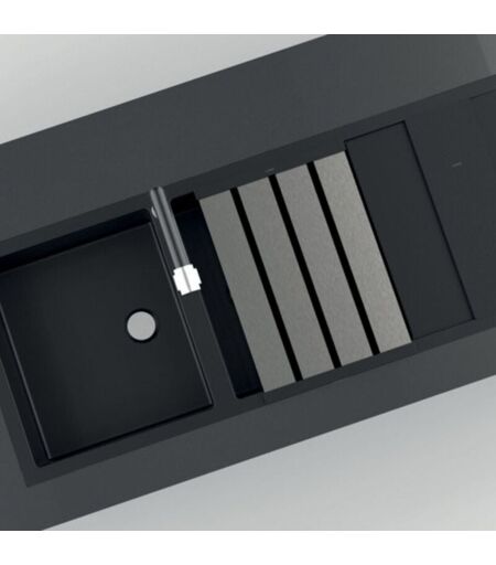 Luisina - Egouttoir rabattable inox brossé et planche à découper en verre noir