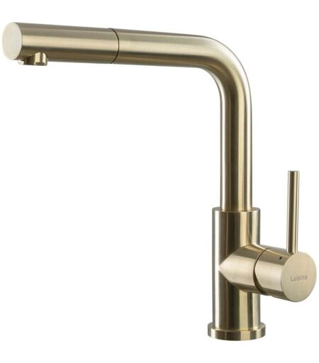 Mitigeur de cuisine Luisina RC304DO018, bec pivotant inox massif doré avec douchette extractible simple jet Mitigeur avec cartouche céramique, débit à 8,51L/mn à 3 bars. Flexibles fixes. DIMENSION(S) Hauteur hors tout 290 mm Hauteur sous bec 255 mm Diamètre de perçage 35 mm Diamètre base 54 mm Garantie 5 ans ...