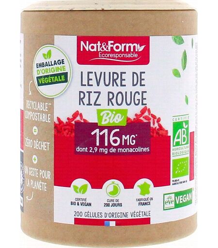 Nat&Form; Levure De Riz Rouge Bio 200 Gélules