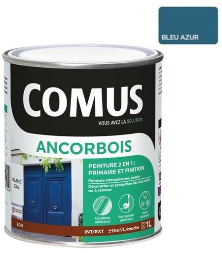 Comus - ancorbois bleu azur ral 5009 1L - Peinture de protection et de décoration microporeuse 2 en 1 bois