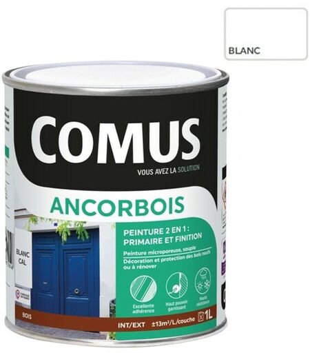 Comus - ancorbois blanc 1L - Peinture de protection et de décoration microporeuse 2 en 1 (primaire et finition) bois