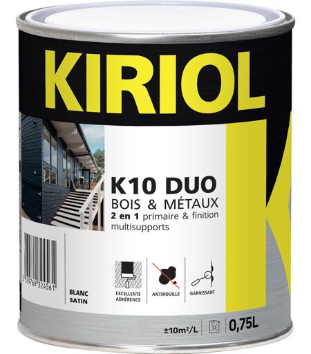 K10 duo blanc satin 0,75L - Primaire/finition à base de résines alkydes Kiriol