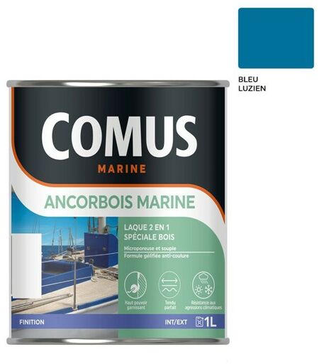 Comus - ancorbois marine bleu luzien 1L- Laque microporeuse pour la protection et la décoration des bois et dérivé