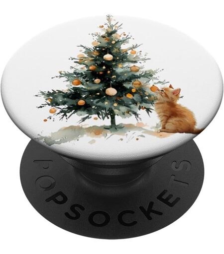 Teppc-Arbre De Noël, Chat, Mignon, Chaton Popsockets Popgrip Adhésif