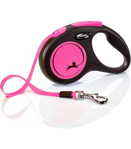 Teppc-Flexi, Laisse Modèle New Neon, Version Sangle, Une Visibilité Accrue Grâce Au Réflecteur Néon, Système De Guidage Perfectionné, Système De Freinage Robuste, Made In Germany, Noir/Rose, S - 5m