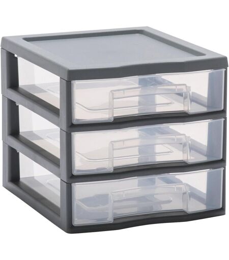 Teppd-Sundis Tag Tower, Petite Tour De Rangement En Plastique Gris, 3 Tiroirs Transparents Format A6, Hauteur 17 Cm, Superposable, Idéale Rangement Cosmétiques, Bijoux, Accessoires, Fournitures