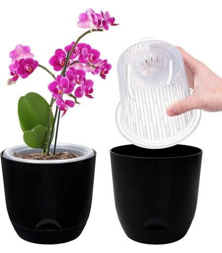 Teppe-2pack Pot Pour Orchid¿¿Es Transparent, 14,7 Cm Pot De Fleur Int¿¿Rieur, Bac ¿¿ R¿¿Serve D'eau Pour Plante Int¿¿Rieur, Double Couche Auto-Irrigation Avec Circulation D'air Optimale¿¿Noir Pur¿¿
