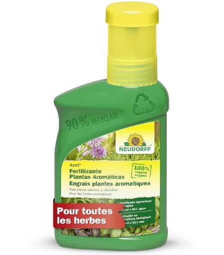 Pour toutes les herbe L'engrais bio organique est idéal pour des herbes particulièrement vigoureuses et savoureuses, comme l'origan et le basilic. Suffit pour 50 litres d'eau d'arrosageUn apport optimal en nutriments L'amélioration de la vie du sol permet une utilisation optimale des éléments nutritifs, favorisant ainsi une croissance rapide, des racines saines et des herbes aromatiquesIngrédients 100 % naturels L'engrais liquide innovant utilise des nutriments précieux issus de la transformation du maïs, est végan et ne contient pas d'additifs synthétiques, permettant une meilleure utilisation des sous-produits de haute qualitéRésistance accrue Une meilleure absorption de l'eau et des nutriments renforce la résistance à la sécheresse, à la chaleur, au froid et aux parasitesPréserve les animaux domestiques L'engrais bio est à base de substances purement végétales et est inoffensif pour l'homme et l'animal. Utilisable en agriculture biologique Expédié depuis la France et arrive sous 7 jours. ...