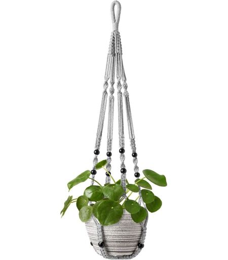 TEPPE-Macrame Plant Hangers Indoor Hanging Planter Basket with Wood Beads Decorative Flower Pot Holder No Tassels for Indoor Outdoor Home Decor 89cm, Grey