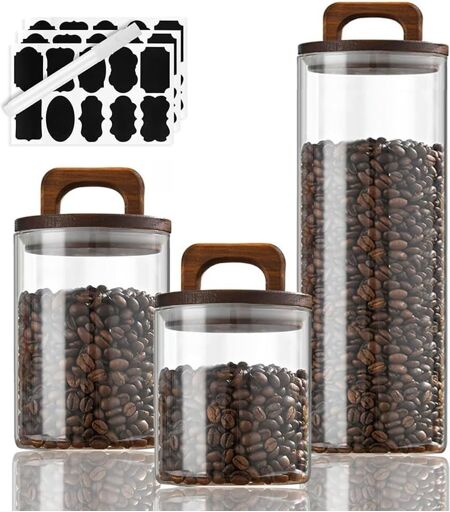 Bocal En Verre Avec Couvercle Set de 3 Pièces Bocaux en verre hermétique pour la maison et la cuisine, économisez vos aliments et du temps. Capacité de 700ml, 800ml, 1800ml. Parfaits pour sous-emballer le thé, le café, le sucre, la farine, le muesli, les haricots, le riz, les épices, les herbes et vos snacks préférés comme les biscuits, les bonbons, les noix, etc. En outre, il existe différents produits secs.Matériau supérieurLe verre à haute teneur en borosilicate est plus léger et plus fin que le verre ordinaire. Le corps de la bouteille, d'une épaisseur de 3 mm, est durable. Il résiste aux différences de température instantanées entre -20¿ et 150¿ et convient parfaitement à une utilisation dans différents scénarios tels que le chauffage au micro-ondes et le refroidissement du réfrigérateur.Easy Grip Handles Design Design unique de poignées brevetées le rend très pratique et accrocheur. Les bidons en verre avec des couvercles en bois et des poignées sont confortables à saisir, même pour les enfants et les personnes âgées. Le bouchon en liège est fabriqué en bois naturel respectueux de l'environnement, il est sûr et non toxique, il a une surface de coupe lisse et une résistance à l'usure.Bonne Hermétique Le joint d'étanchéité du couvercle rond en liège empêche l'air de pénétrer et crée un environnement étanche à l'air et à l'humidité pour garder le contenu au sec. Isole la poussière et les petits insectes, ce qui leur permet de remplir la bouteille et de garder le contenu frais pendant longtemps. Ne convient pas si vous avez des exigences très strictes en matière d'étanchéité à l'air. (Veuillez en tenir compte avant l'achat.)Bouteille Transparente Le matériau en verre transparent à haute teneur en borosilicate peut rendre le contenu de la bouteille plus transparent et plus clair. En plus de la conservation quotidienne, il peut également être utilisé pour la décoration de la maison et la bouche de la bouteille à large col facilite le versement des aliments dans la bouteille sans cuillère. Expédié depuis la France et arrive sous 7 jours. ...