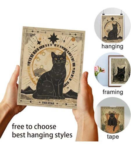 Décoration murale de chat noir Affiches murales de chat noir sur le thème du tarot, chaque ?uvre d'art est un thème différent du chat noir associé à la nuit, soleil, lune, les bois, cheminée, etc.., tous mettant en valeur un rêve, atmosphère mystérieuse et paisible, imprégné de la magie de la nuit étoilée et de l'élégance des félins, ce n'est pas seulement une peinture de tarot de chat noir, mais aussi des ?uvres d'art pour égayer votre vieImpressions de qualité - Notre affiche d'art mural est imprimée sur du papier d'art de haute qualité avec des couleurs vives, texture douce, pas facile à déchirer ou à casser, idéal pour la décoration de la maison, décoration de bureau, donner en cadeauPratique à encadrer - Cette affiche décorative d'intérieur est livrée sans cadre, vous pouvez choisir de manière flexible différents types de cadres d'affiches pour correspondre facilement à votre décor d'affiche et rendre la décoration murale plus accrocheuseContenu de l'emballagevous recevrez 6 impression d'art sur le thème du chat, la taille est d'environ 20.5cm de large, 25.4cm de long, peut être collé ou encadré à la plupart des endroits du mur, veuillez vérifier la taille avant d'acheterProfitez de l'art - Cet ensemble d'art mural capture le moment de la pensée silencieuse et profonde du chat dans la nuit de rêve, offrant un festin visuel riche en scènes pour votre maison, chambre, salon, cuisine, salle de bains, salle à manger, Bureau, chambre, etc.., cadeau idéal pour les amis, famille, les proches, Nouvelles années, anniversaires, festivals, etc Expédié depuis la France et arrive sous 7 jours. ...