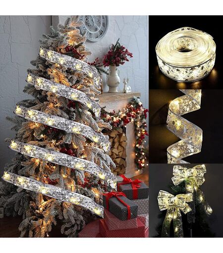 KAL-Lumières De Ruban De Noël, 16,4 Ft 50 Leds Lumineuses À Ruban Brillant Avec 2 Modes, Arc En Dentelle Diy Décor, Fairy Lights For Garden Patio De Décorations De Sapin De Noël