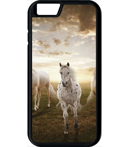 Coque Pour Smartphone - Sunset Horses - Compatible Avec Apple Iphone 6s - Plastique - Bord Noir