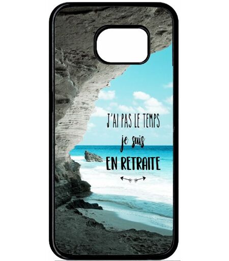 Coque Pour Smartphone - J Ai Pas Le Temps Je Suis En Retraite Paysage Mer - Compatible Avec Samsung Galaxy S6 Edge - Plastique - Bord Noir