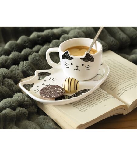 Cet adorable ensemble assiette + tasse en forme de chat, associé à une cuillère, apportera une touche d'originalité sur votre table. Tasse + assiette + cuillère : De la vaisselle "chat", pratique et décorative Un set de vaisselle élégant parfait pour un petit-déjeuner gourmand ou une pause thé réconfortante ! Caractéristiques Matières : céramique et acier inoxydable Dimensions : 18,4 x 13,3 cm (assiette), 11,2 (diam 8,5) x 7 cm (tasse) Entretien : passent au lave-vaisselle ...