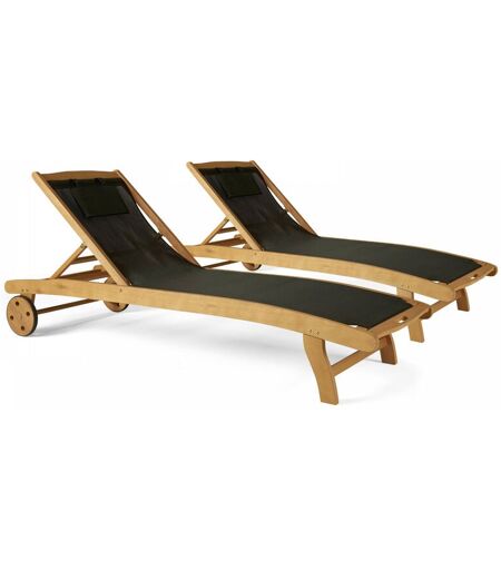 Oviala - Lot de 2 bains de soleil en bois inclinable avec roues noir