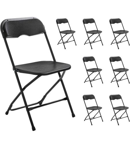 Chaise pliable noire - lot de 8 - Ces chaises pliantes de réception sont idéales pour vos événements intérieurs comme extérieurs. Grâce à leur structure en acier époxy, leur assise en PEHD, et leur système d'évacuation des eaux de pluies , elles ne craignent ni les uv ni l'humidité. La chaise d'appoint noire peut supporter 110 kg. Elle dispose de patins antidérapants afin d'assurer sa stabilité. Dimensions ouvert L.45 x l.45 x H.89 cm Dimensions fermé H.107 x l.45 x ép.4 cm Matière Structure: acier avec finition peinture époxy. Plateau et assise: Polyéthylène Haute Densité (PEHD) Section de la structure Tubes de section rond 19mm Couleur Noir Charge max imum supportée Charge maximum supportée 110kg Usage professionnel Usage professionnel intensif + Utilisation Intérieur / Extérieur Poids 3,6 kg par chaise Les + du produit Système d'évacuation des eaux de pluie - Anti-statique - Robuste, résistante aux chocs et fissures - Pliable et peu encombrante - Patins anti-dérapants ...