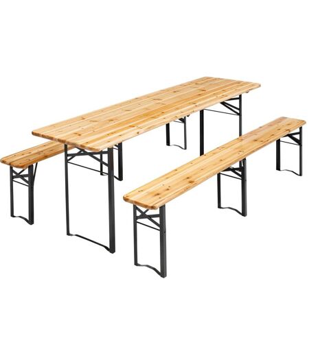 Oviala Ensemble brasserie table et bancs en bois pliants 218 cm Marron 218x75x58cm