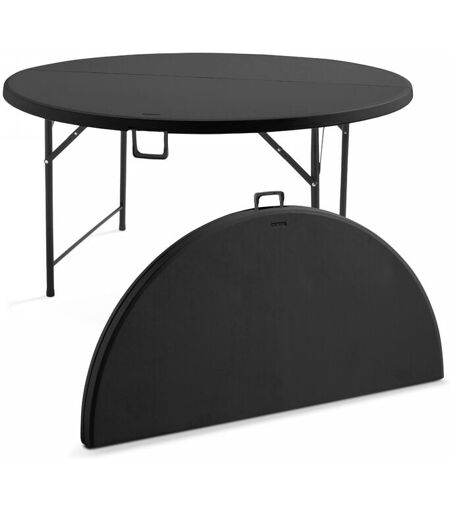 Description générale Table pliable en plastique ronde de 150 cm de diamètre, cette table peut accueillir jusqu'à 8 personnes. Conçue à l'origine pour les professionnels de l'événementiel, elle est idéale comme table d'appoint pour vos réceptions. adaptée à un usage intérieur et extérieur, elle peut supporter jusqu'à 130 kg grâce à sa structure en acier époxy et son plateau en PEHD (résine plastique). Les pieds se rabattent et le plateau se plie en deux, ce qui permet de la transporter facilement au format valise grâce à sa poignée intégrée. Spécifications techniques Dimensions ouvert : Diam. 150 x H. 74 cm Dimensions fermé : L. 150 x l. 75 x ép. 8 cm Nombre de places assises : 8 personnes Matière : Structure en acier finition peinture époxy noire, plateau en Polyéthylène Haute Densité (PEHD) Section de la structure : Ronde de section Diam. 28 mm x Ép. 1,2 mm Couleur : Piétement noir - Plateau noir Charge maximum supportée : 130 kg Poids : 20 kg Compatibilité et accessoires Compatible ...