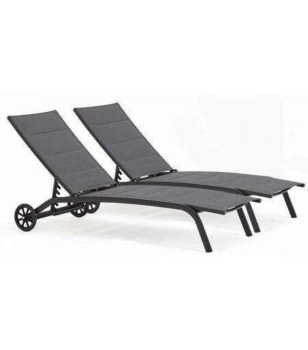 Solys - Lot de 2 bains de soleil en aluminium noir