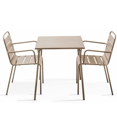 Oviala - Ensemble table de jardin bistrot et 2 fauteuils acier taupe - Palavas