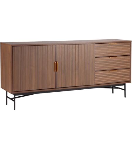 Oviala - Buffet 2 portes et 3 tiroirs en mélaminé et acier 160 cm marron