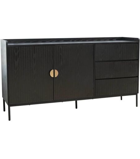 Oviala - Buffet 2 portes et 3 tiroirs en acier et mdf décor mélaminé noir