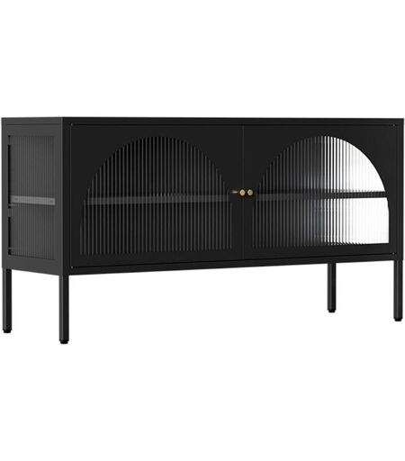 OVIALA Meuble TV moderne 2 portes L115 cm en métal noir