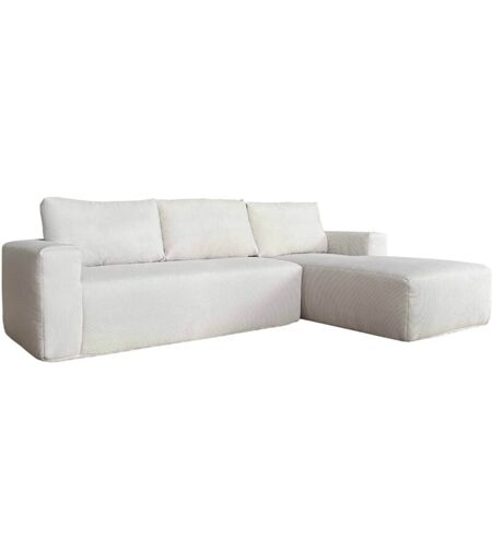 OVIALA Canapé d'angle 4 places avec méridienne droite et coussins écru