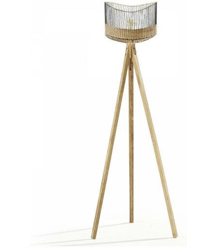 Avec le lampadaire sur trépied en bois de manguier AGGAR, l'éclairage de votre pièce recouvre toute sa splendeur. Il ajoute une note raffinée à votre salon tout en jouant sur des matières naturelles. Une structure en métal filaire noir compose son abat-jour. Le tressage des fibres en rotin apporte une touche originale à cette lampe. L'alliance de ces matières laisse filtrer la lumière dans des jeux de transparence. L'abat-jour repose sur un trépied en bois exotique facile à entretenir. Le manguier est une matière résistante et récoltée dans des conditions qui respectent l'environnement. Sa couleur naturelle se marie avec tout autre bois. Pourvu d'un fil électrique d'une longueur de 3,5 mètres, ce lampadaire trouvera aisément sa place dans votre salon. Installez-le près d'un fauteuil : vous ne pourrez plus quitter ce coin lecture chaleureux ! Dans une chambre, il accompagne avec élégance un secrétaire ou une table basse. Utilisez une ampoule E27 et obtenez ainsi un éclairage adouci et ...