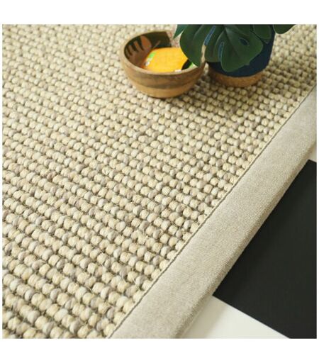 Décoweb - Tapis Laine et sisal - Caloundra grosses boucles crème - Ganse chenille grège - 120 x 170 cm