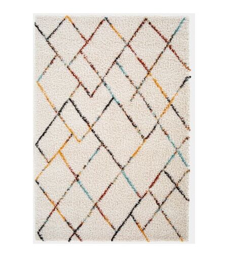 DÉCOWEB Tapis motif berbère - Nelya - Écru et traits multicolore - 160 x 230 cm