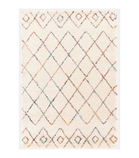 DÉCOWEB Tapis motif berbère - Ouna - Écru et losanges multicolore - 140 x 200 cm