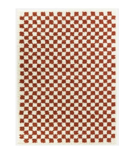 Décoweb - Tapis damier à poils longs - Colorama - Rouge terracotta - 160 x 230 cm
