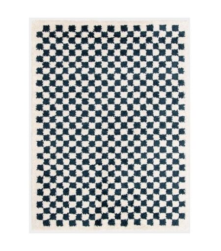 Décoweb - Tapis damier à poils longs - Colorama - Bleu pétrole - 200 x 290 cm