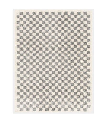 Décoweb - Tapis damier à poils longs - Colorama - Gris coloré - 80 x 150 cm