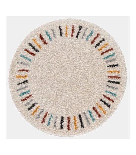 Décoweb - Tapis rond chambre d'enfant berbère - Adel - Beige et traits multicolore - ø 160 cm