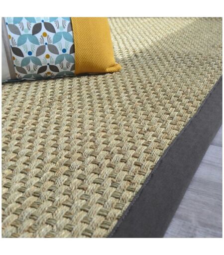 Décoweb - Tapis jonc de mer - Paro fin natté 4x4 - Ganse coton anthracite - 160 x 230 cm