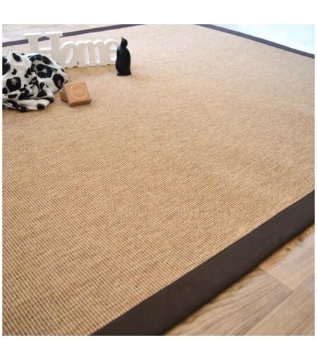Décoweb - Tapis Tissé plat - Mahé naturel - Ganse coton marron - 160 x 230 cm