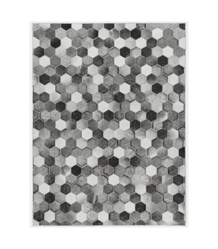 Décoweb - Tapis toucher soft - Imprimé peau de vache - Patchwork gris - 120 x 160 cm