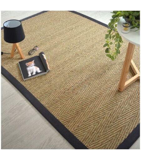 Décoweb - Tapis Jonc de mer - Assam chevron - Ganse coton noire - 120 x 170 cm
